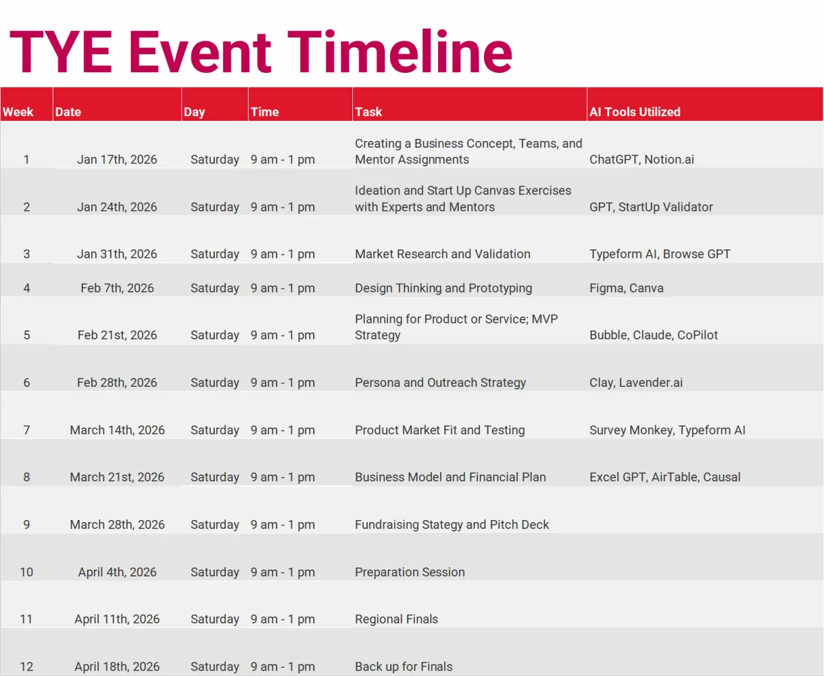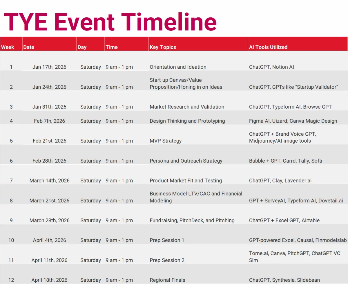 The winning team from the chapter will qualify to compete in the TYE Global Competition in the summer of 2026 for the top prize of up to $10,000.